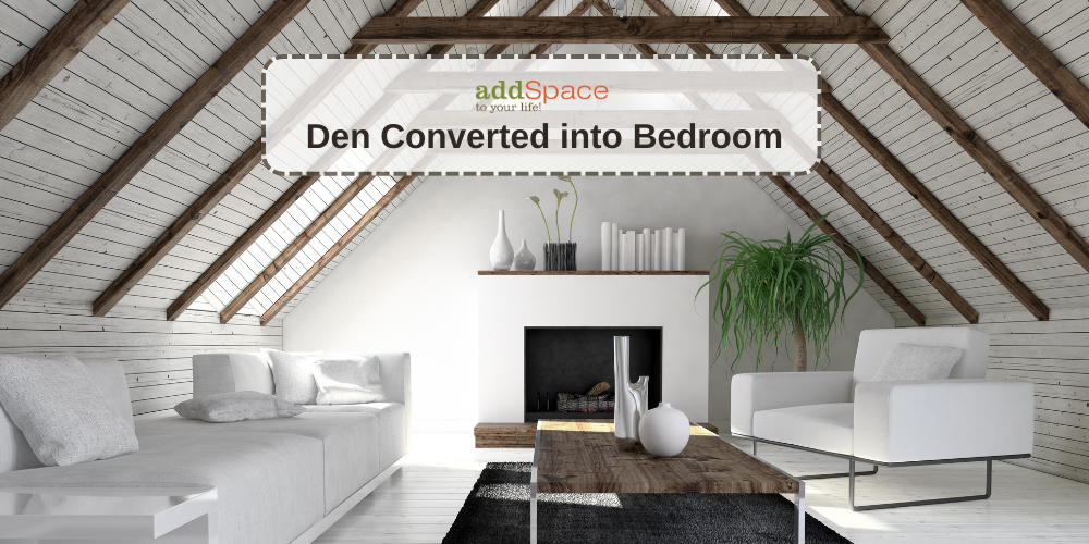This den was a makeshift bedroom until I redesigned the space and repositioned the furniture. Moving the bed into a semi-secluded nook, and adding a partition for a headboard and another to add privacy created a private bedroom. We also brought in dresser drawers from upstairs.
